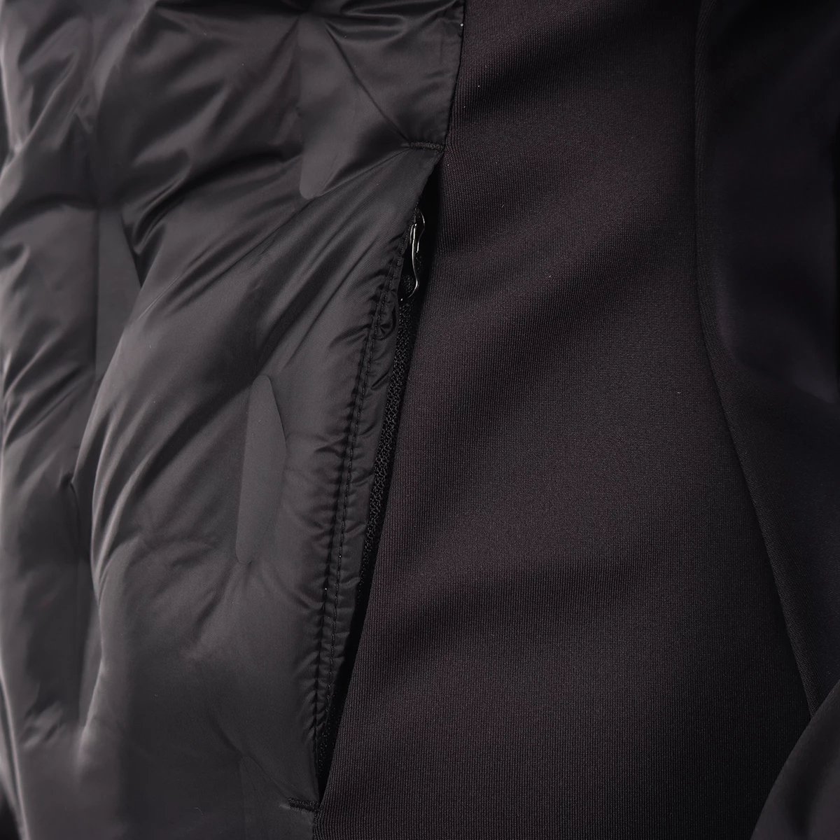 Sporttinen takki, jossa kevyesti topattu vartalo-osa, kaksisuuntainen vetoketju, kaksi vetoketjullista taskua, kaksi sisätaskua ja logo rinnassa. Materiaali: Vartalo-osa 100 % nailonia, hihat 88 % polyesteriä/12 % elastaania.