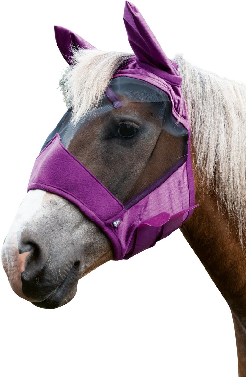 Violetti, hyvin suojaava hyönteishuppu, jossa tiheä, silmien kohdasta muotoiltu verkko, tarrakiinnitys leuan alla ja sileä, hyönteisiä läpäisemätön kangas leuan, sekäkorvien alueella.