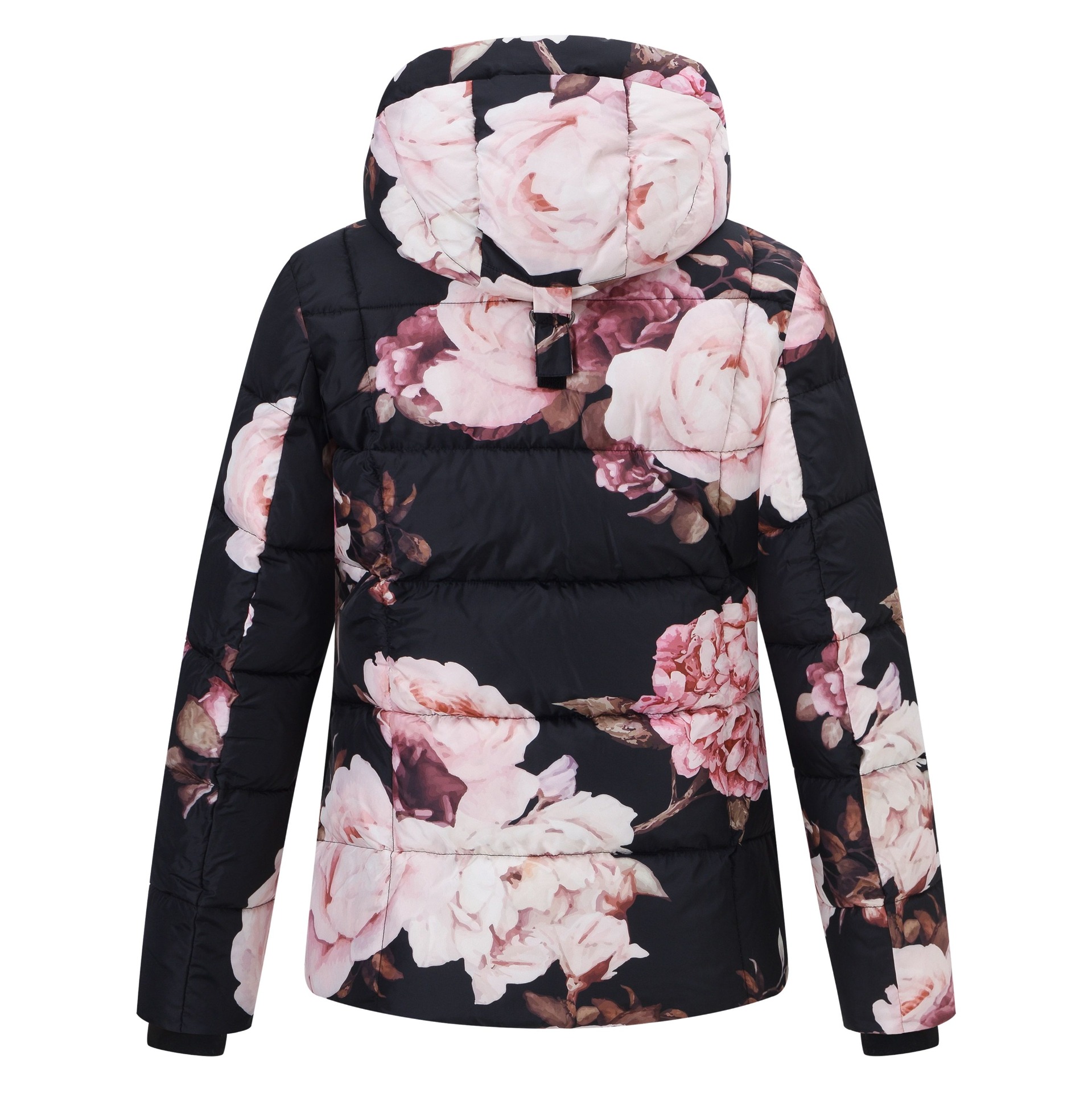 Silmiinpistävä kukkakuvio luo rohkean ja lumoavan ilmeen tähän upeaan toppatakkiin.