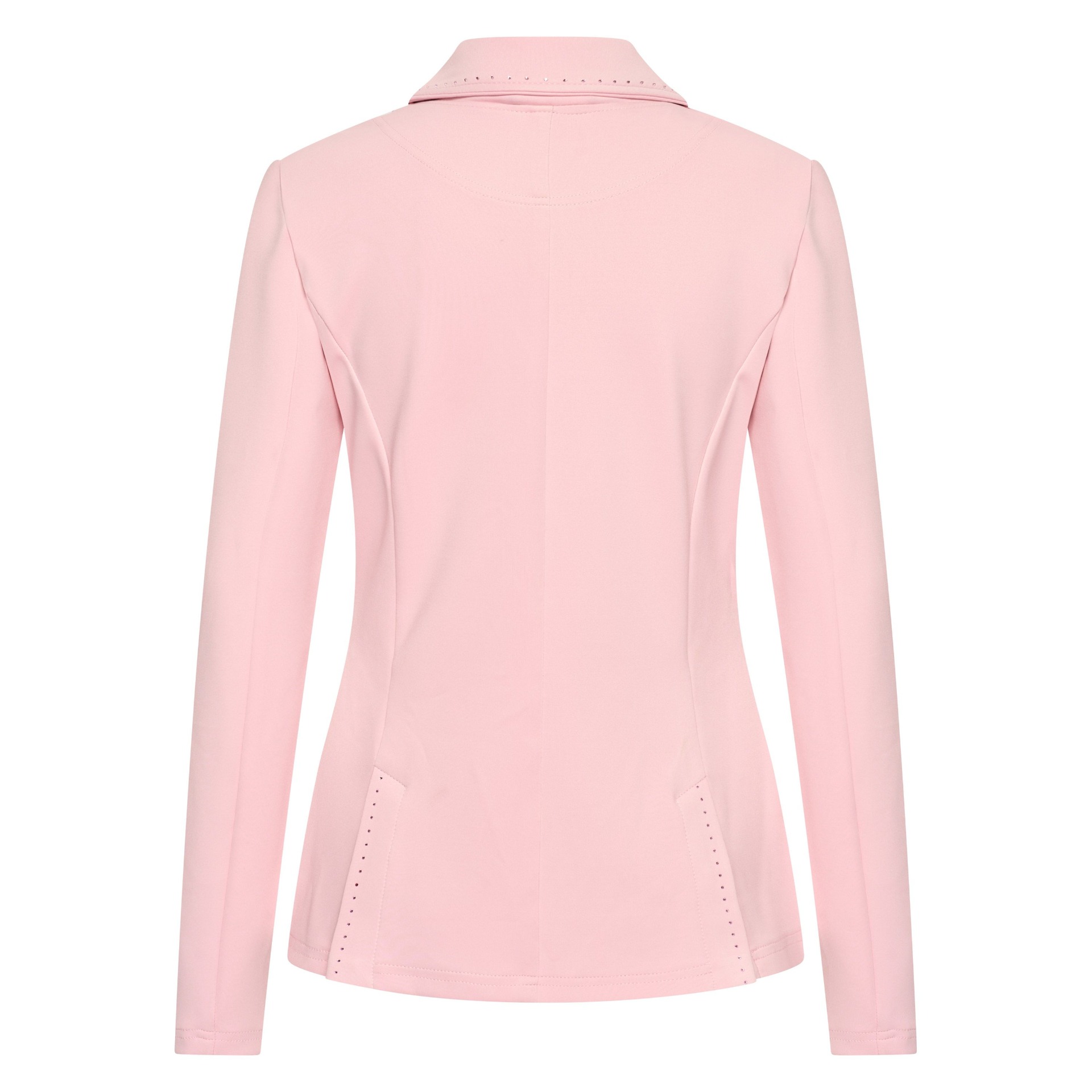 Tyylikäs vaaleanpunainen, kapealinjainen kisatakki.