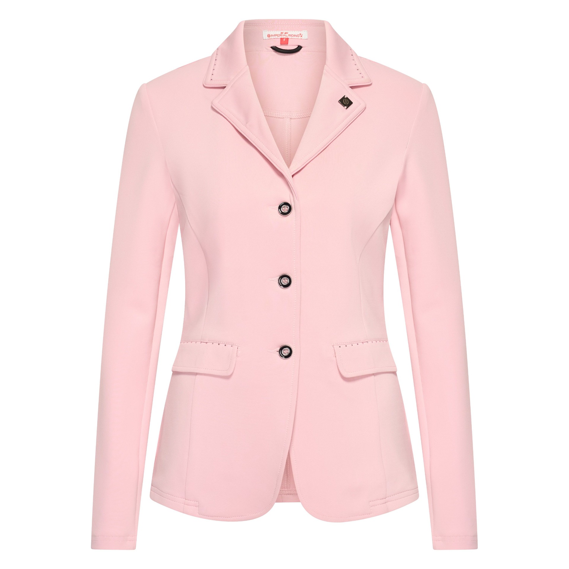 Tyylikkäät läpälliset vinotaskut ja kolmen napin etukiinnitys ajattomaan ratsastustyyliin.