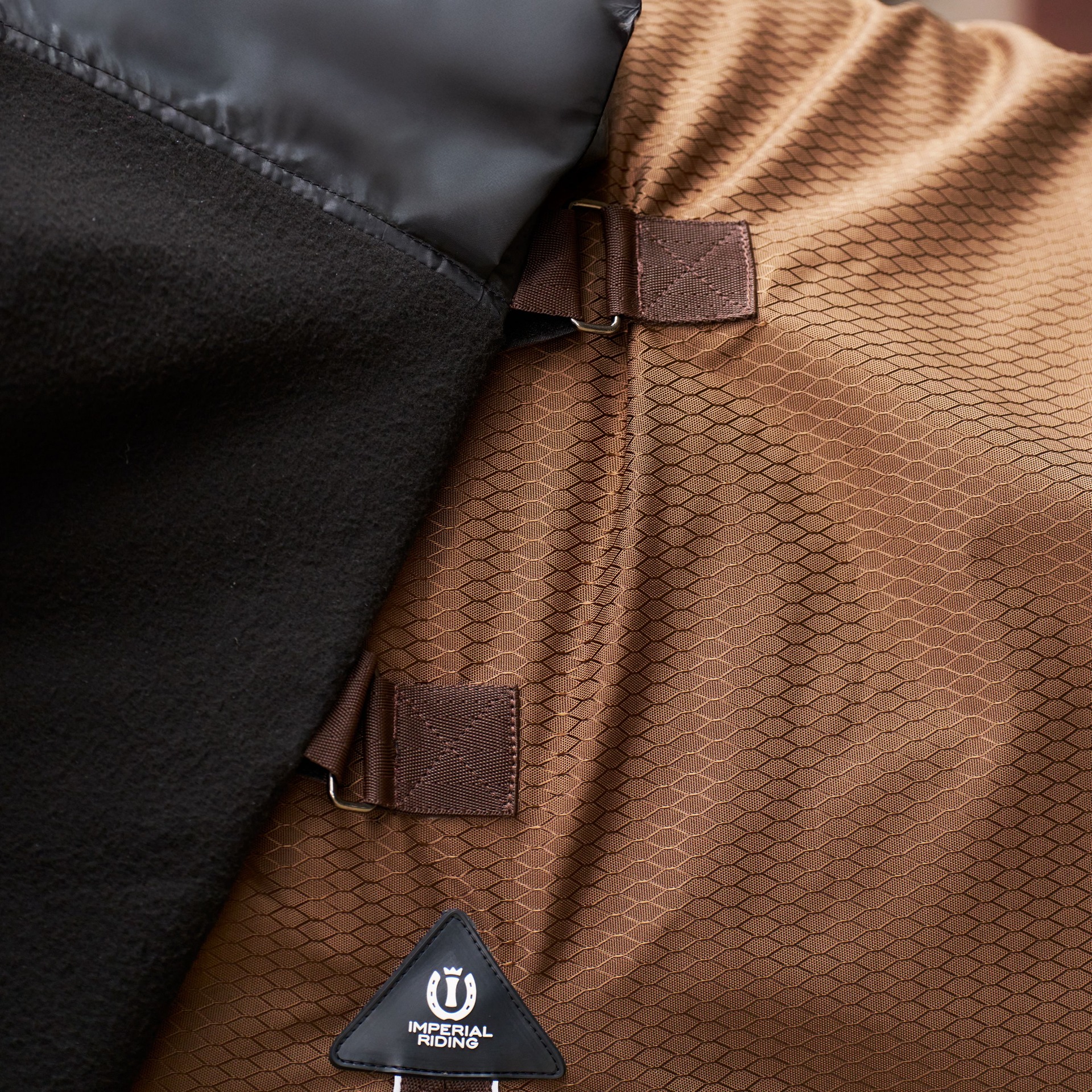 IRH-Super-proof 100g täytteellä oleva ulkoloimi yhdistää kestävän 1200D ripstop kankaan, innovatiivisen Armadillo kaulakappaleen ja pehmeän kaulapehmusteen tarjotakseen hevoselle suojaa ja mukavuutta joka säällä.
