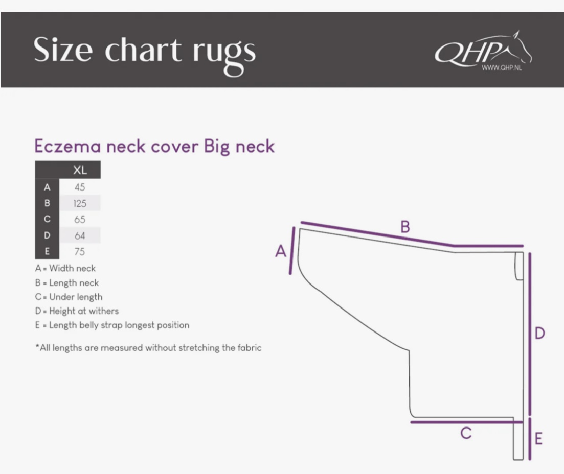 Joustava isompi kaulaisille hevosille mitoitettu ihottumaloimi kaulasuoja, joka istuu täydellisesti. Valmistettu joustavasta materiaalista, joka suojaa hyönteisten puremilta. Varustettu säädettävällä joustavalla kaularemmillä ja joustavalla vyöllä varman ja mukavan istuvuuden takaamiseksi. Sopii edestä leveille, isommille hevosille, mm. friisiläisille tai barokkihevosille, suomenhevosille ja muille työhevostyyppisille roduille.