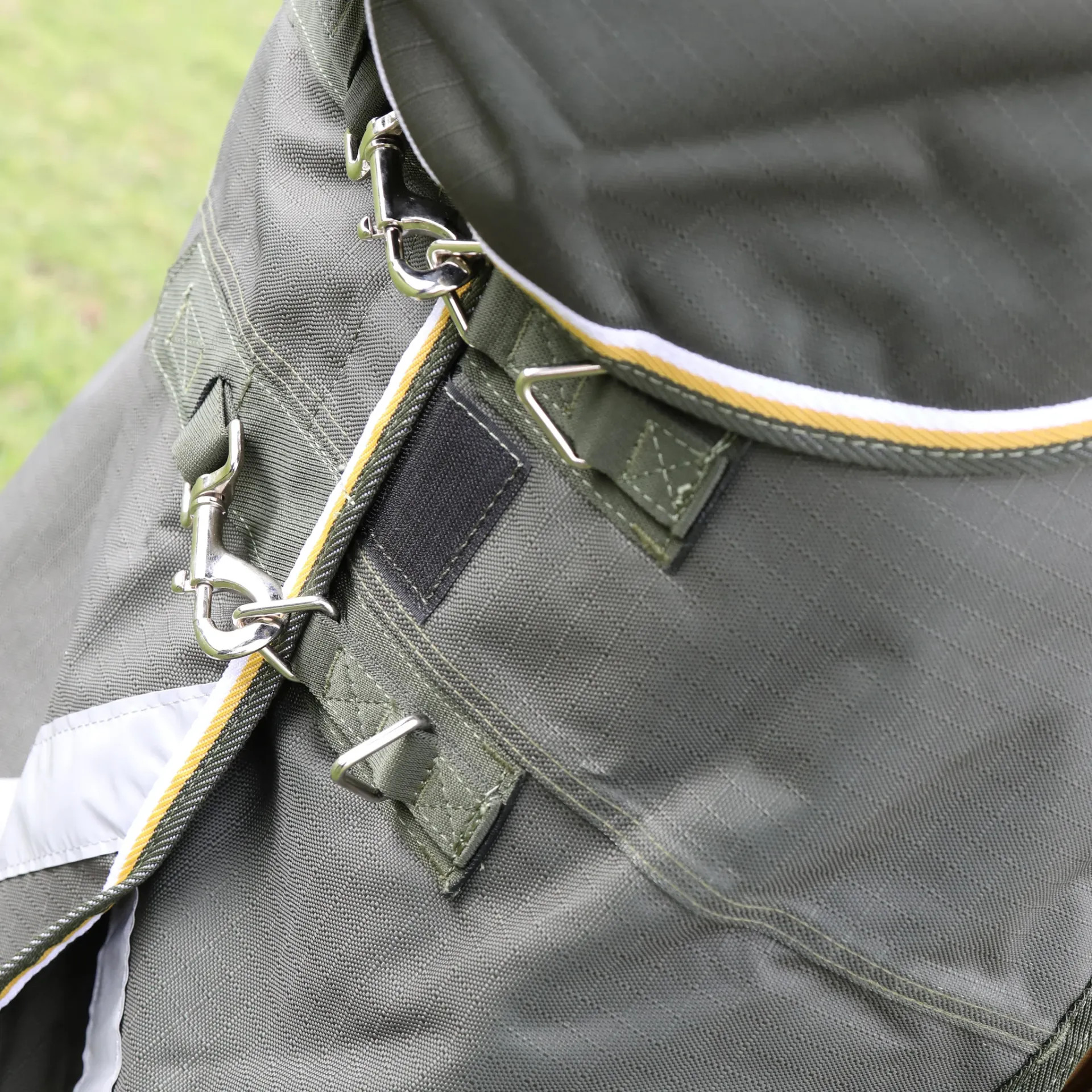 SHIRETEX® 1200 DENIER RIPSTOP, VEDENPITÄVÄ JA HENGITTÄVÄ PFC-VAPAA ULKOPUOLI, TEIPATUT  SAUMAT, SILEÄ VUORIKANGAS HEVOSTA VASTEN.