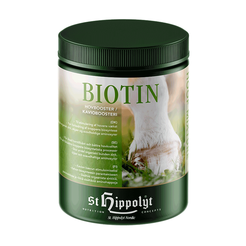 Biotin Hoof Mixturessa biotiini on osa tehokasta monien ainesosien seosta. Yhdessä orgaanisen sinkin, oluthiivan, hapatetun viljan ja rikkipitoisten aminohappojen kanssa tuote vahvistaa kavion rakenteen laatua ja auttaa stabiloimaan kaviota.