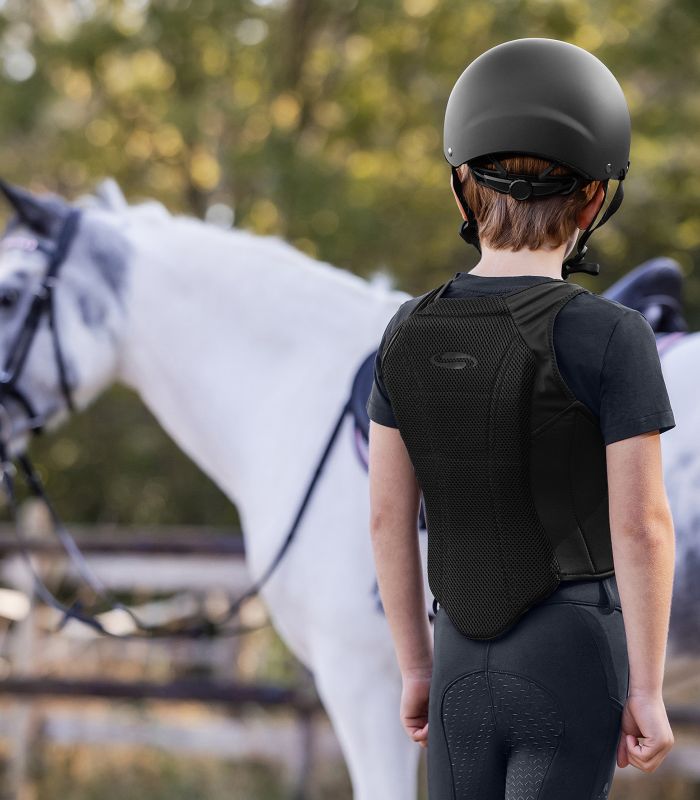 - Joustava, kevyt ja hengittävä kangas maksimaalisen käyttömukavuuden takaamiseksi SWING-selkäsuojat suojaavat vartaloasi vaikuttamatta ratsastuksen nautintoon. Korkean teknologian materiaalien käyttö takaa maksimaalisen liikkumisvapauden. Huomioi, että tämä liivi ei sovellu kenttäratsastukseen!