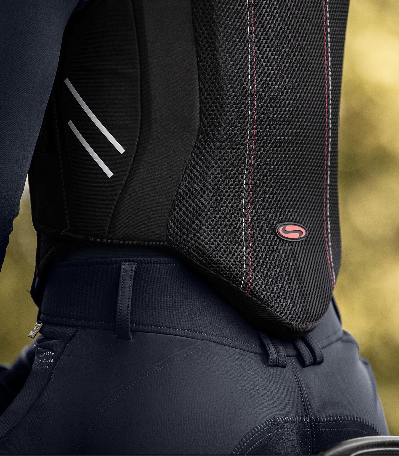 - CE-hyväksytty selkärangan suojaus (moottoripyörästandardin EN 1621-2:2014 mukaisesti)