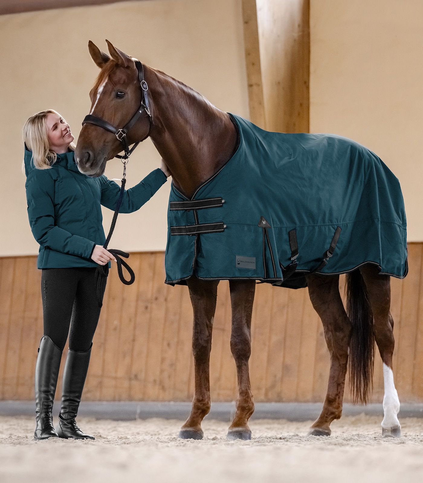 Waldhausen Arctic 100g highneck ulkoloimen avulla voit olla varma, että hevosesi on optimaalisesti suojattu myös vaikeissa olosuhteissa. Antibakteerinen sisävuori takaa maksimaalisen mukavuuden. Tupla-T-kiinnitykset edessä takaavat tukevan istuvuuden ja estävät liukumisen. Heijastinyksityiskohdilla varustettu reunus lisää näkyvyyttä hämärässä. Lapalaskos mahdollistaa rajoittamattoman liikkumisvapauden, kun taas ristikkäiset vatsahihnat tarjoavat lisävakautta. 600 denierin ulkokangas tarjoaa kestävän suojan tuulta ja säätä vastaan.- 600 denierin ripstop