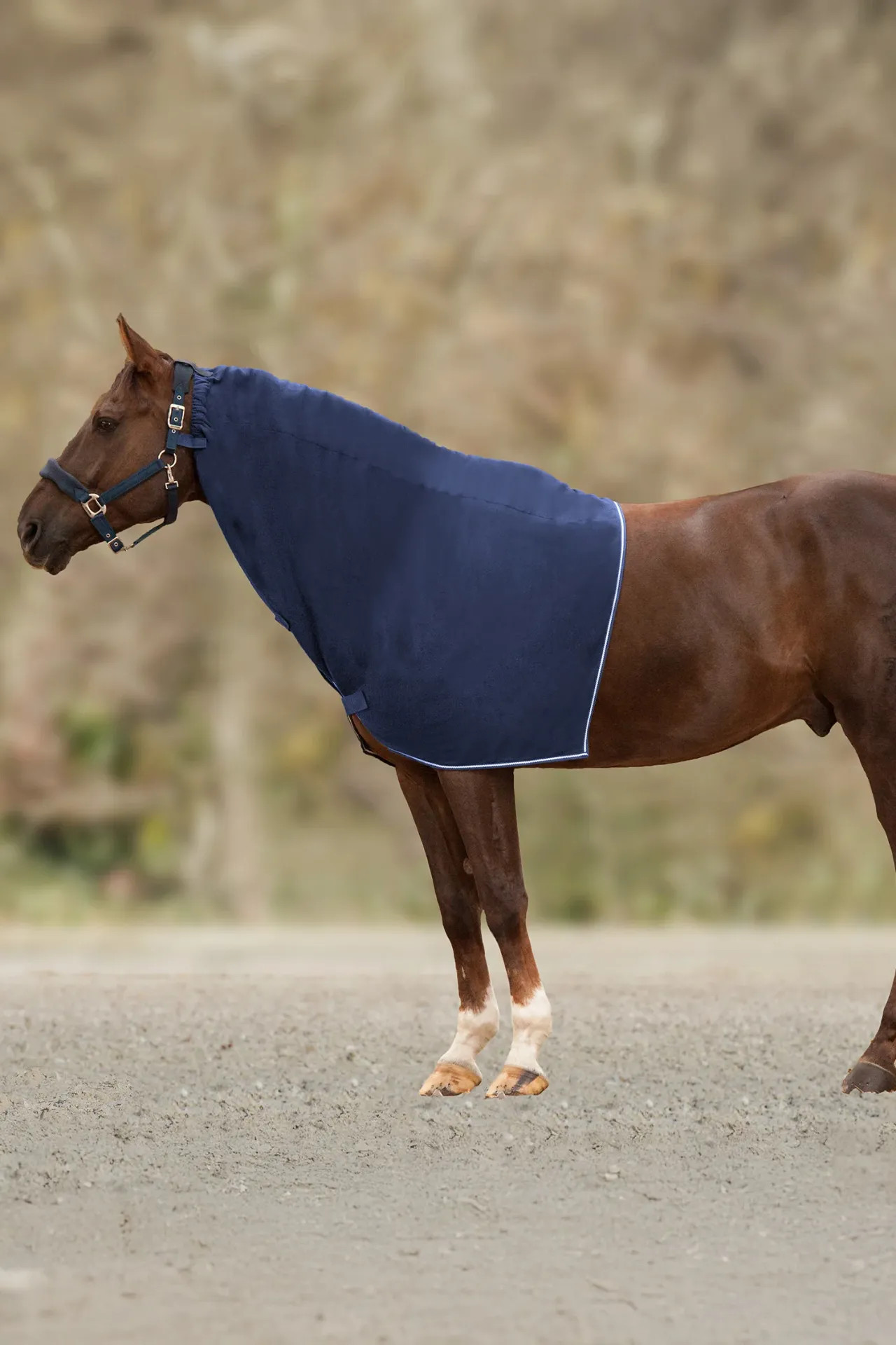 Fleece-kaulakappale on käytännöllinen lisävaruste, joka tarjoaa hevosellesi lisälämpöä ja suojaa tarvittaessa. Valmistettu hengittävästä fleecekankaasta, joka siirtää tehokkaasti kosteutta ja hikeä pois, joten se sopii täydellisesti kylminä päivinä tai koulutuksen jälkeen.