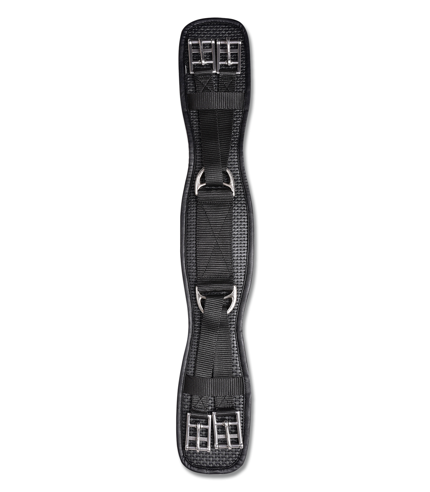Kouluratsastussatulavyö pehmeästä pvc materiaalista valmistettu, ruostumattomasta teräksestä valmistetuilla rullasoljilla. Ei joustoja. Molemmilla puolilla liikkuvat soljet optimaalisen satulavyön kireyden takaamiseksi. Anatominen muoto estää painepisteiden muodostumisen. Helppo puhdistaa, kestää vesipesua.