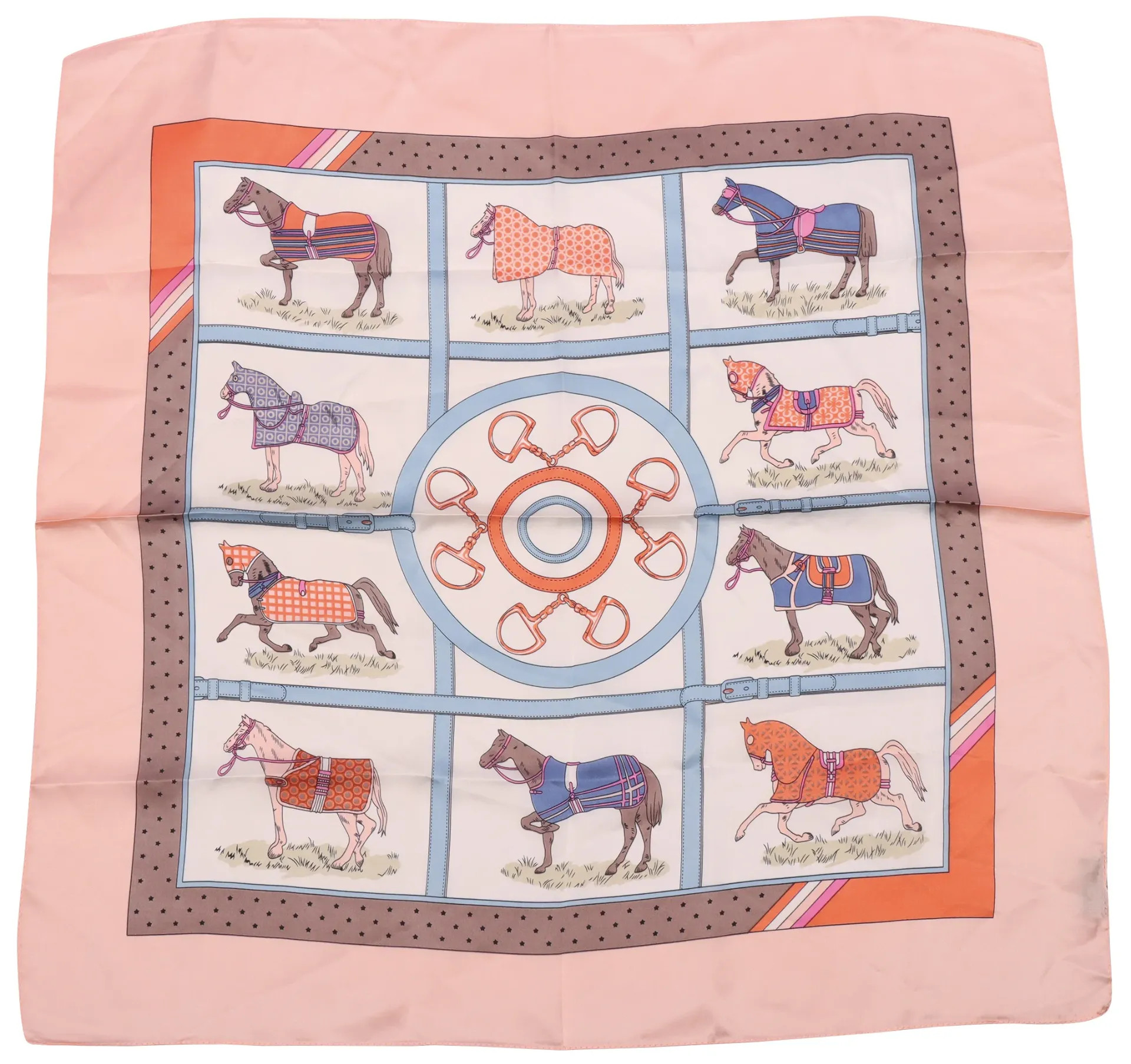 Tyylikäs huivi kauniilla hevosaiheisella painatuksella. Koko: 70 x 70 cm 100 % polyesteriä